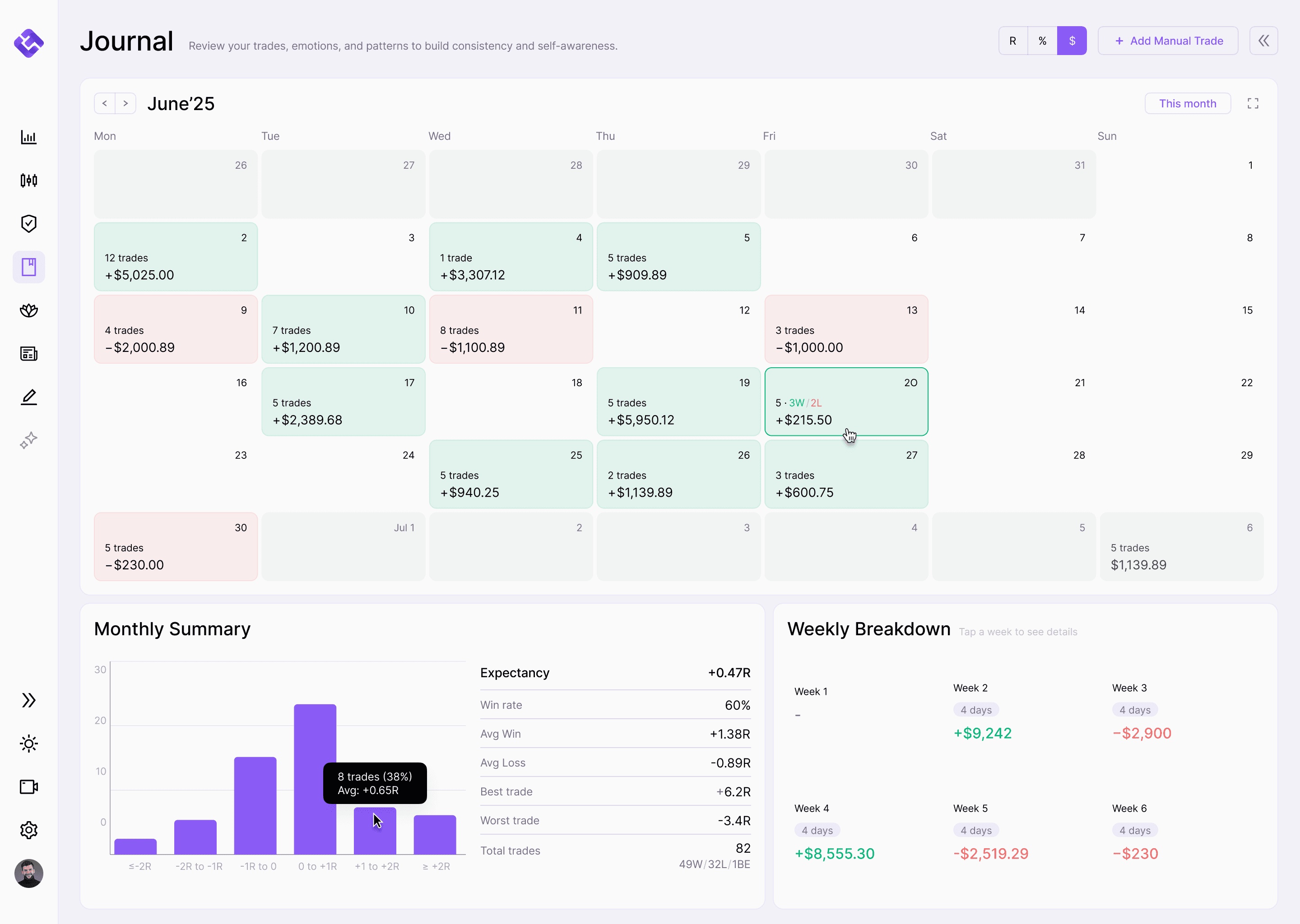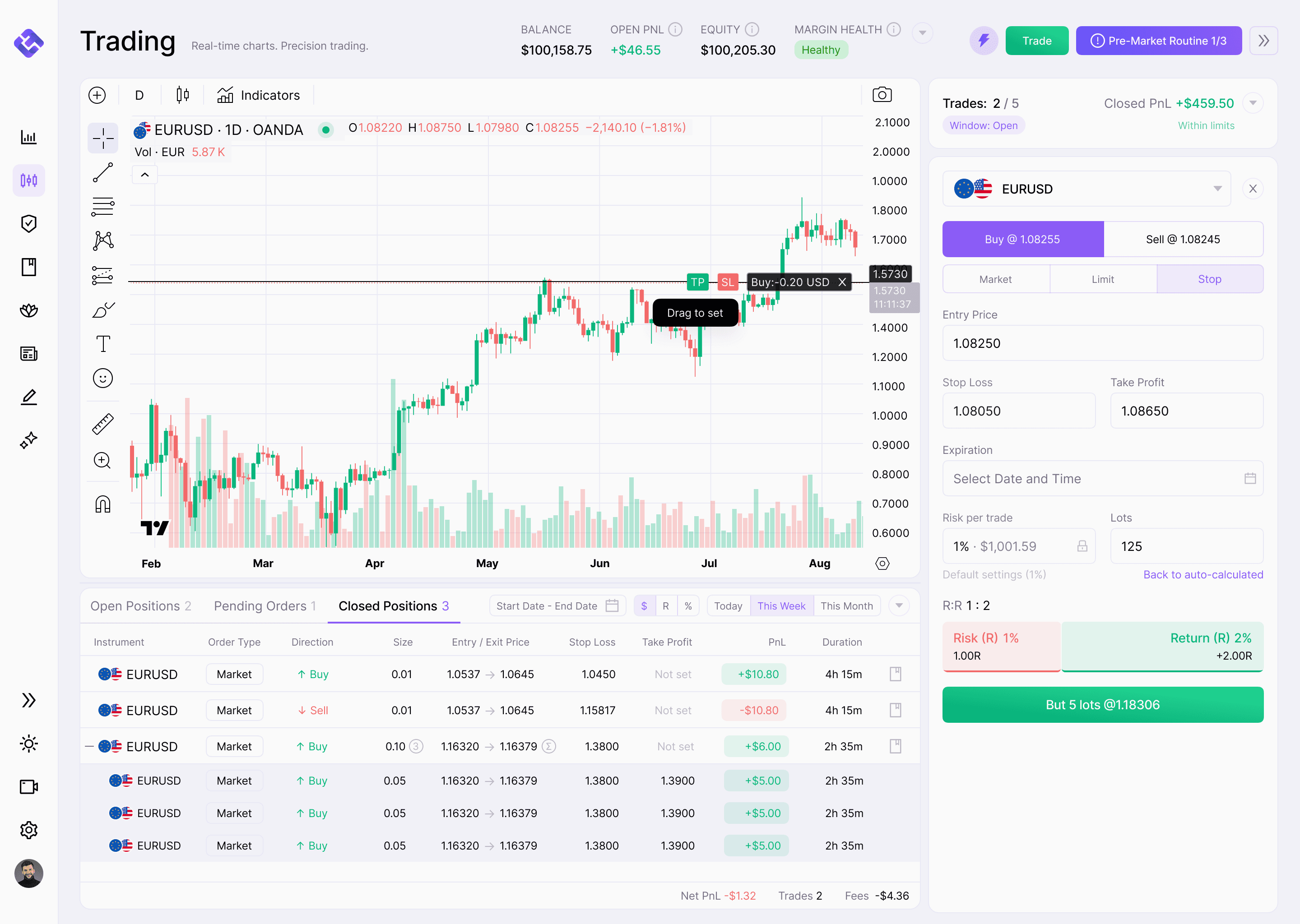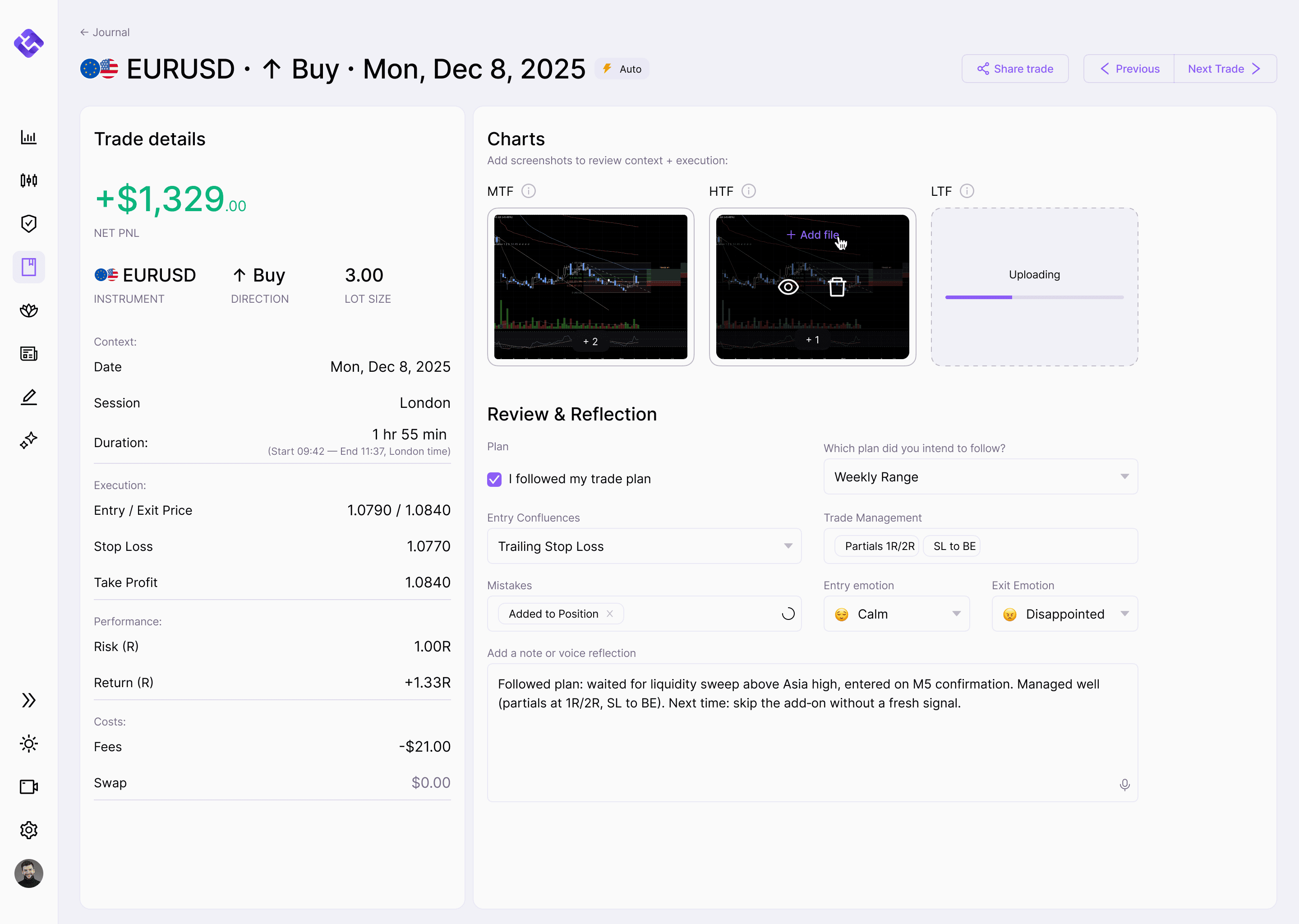 Trade, manage risk, journal, and review in one place, without juggling 10 tools.