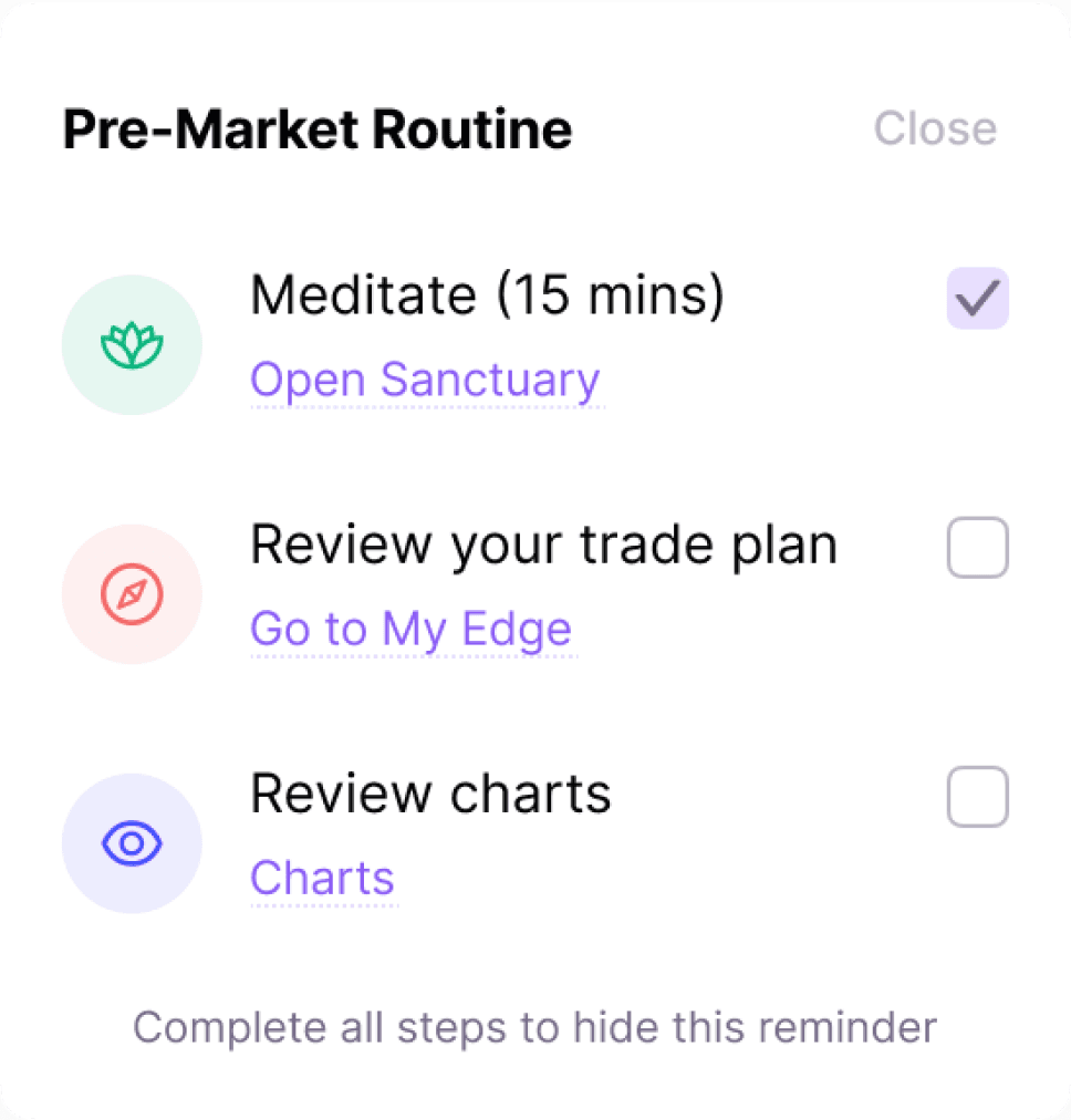 EdgeFlo guides your trading loop so you prepare first, execute with guardrails, and review automatically.