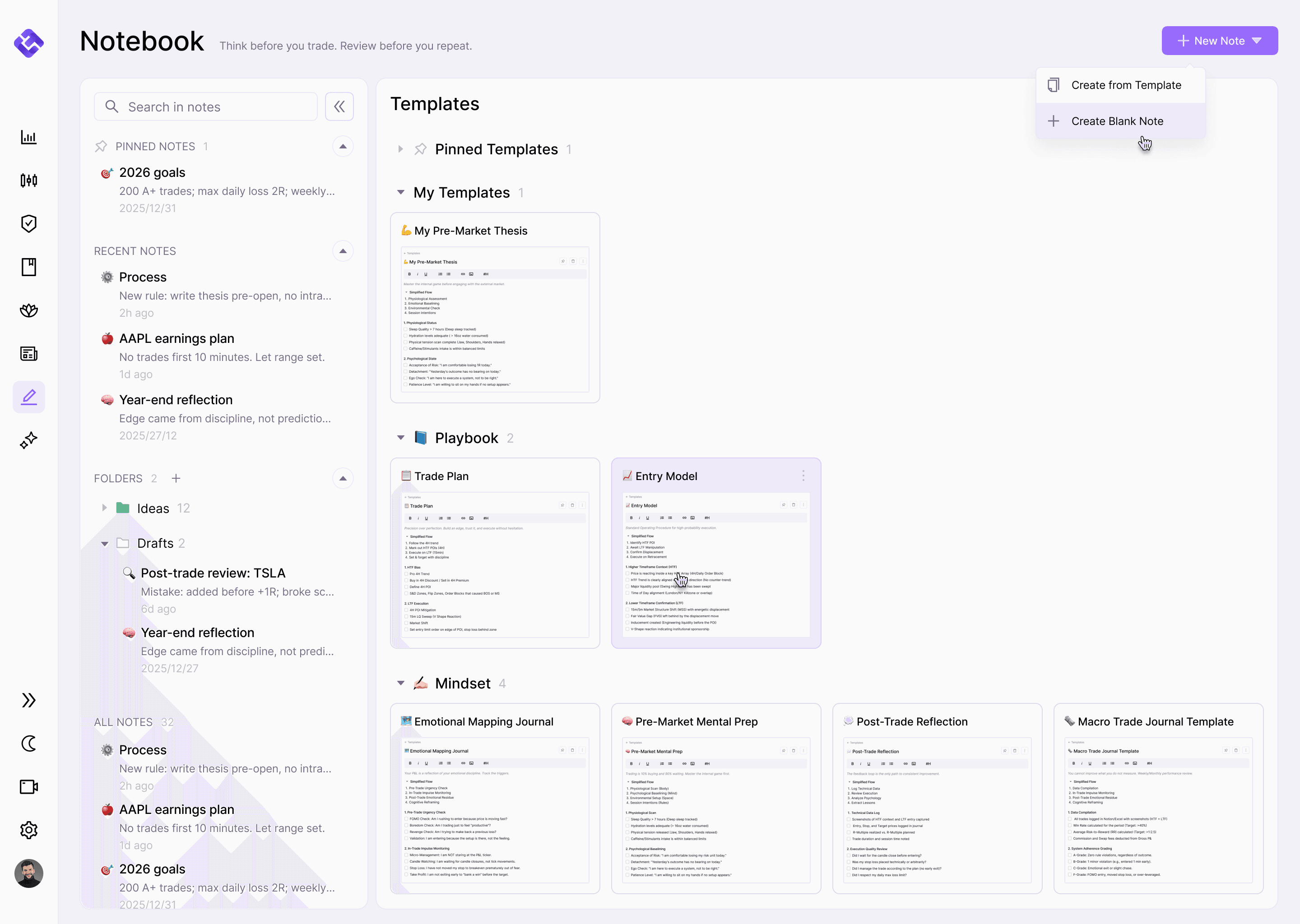 Everything you need to trade with discipline, in one place.
