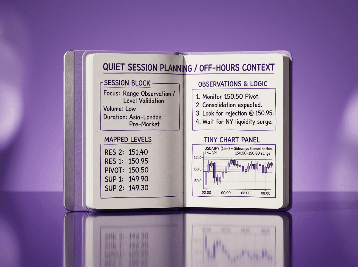 Those quiet hours are ideal for chart markup, level identification, and trade planning.