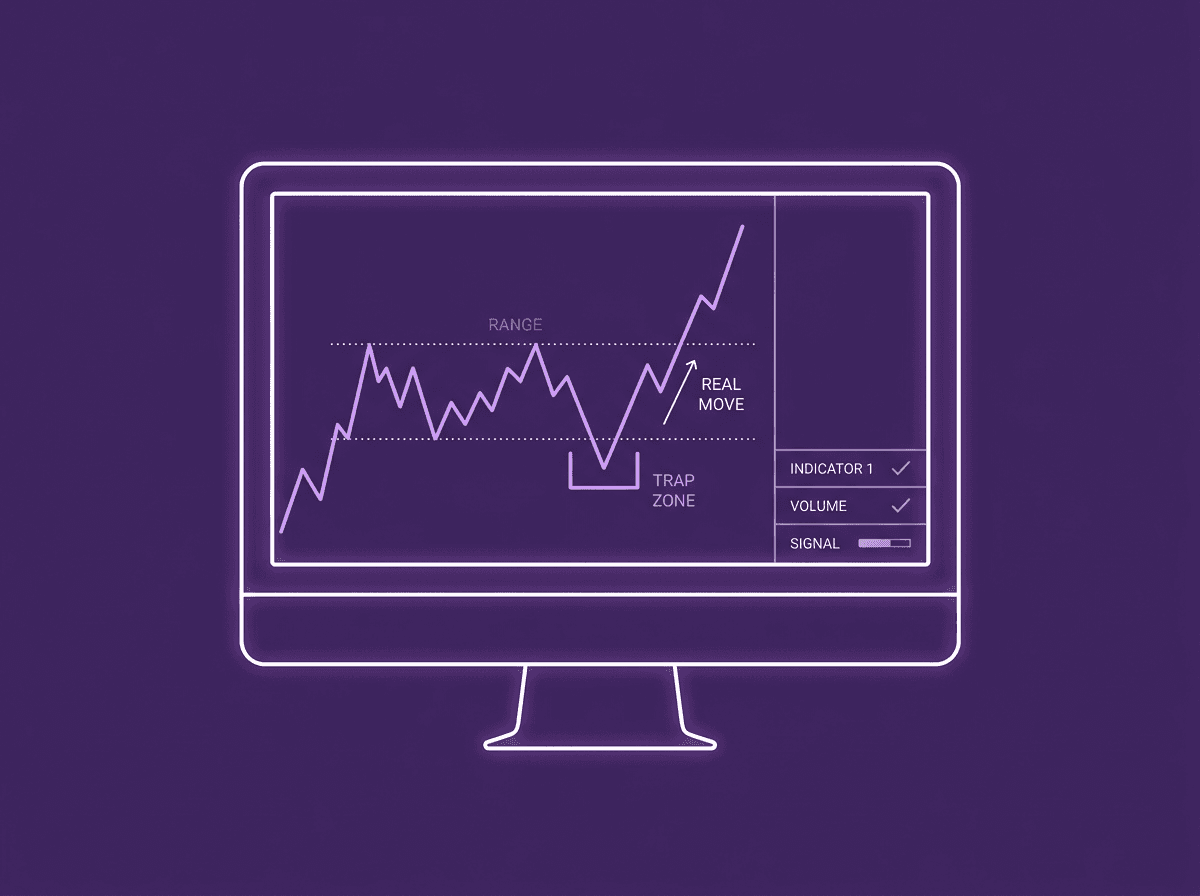 You see price stuck in a tight range. Candles overlap, nothing is moving. Then one candle punches through the range high. You enter long. And price immediately reverses, sweeps back into the range, and takes your stop.