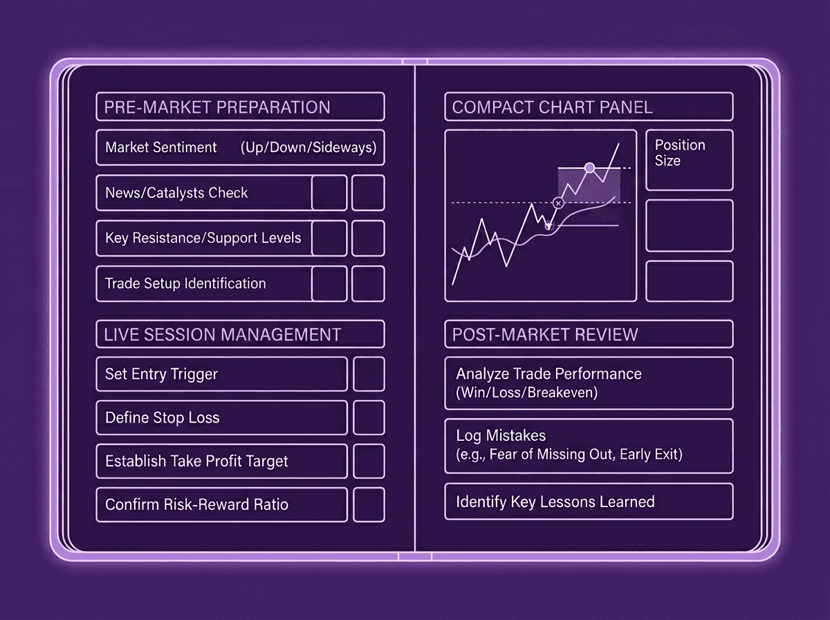 The daily review becomes part of closing your session, not a separate chore you "should" do later. That proximity between trading and reflection is what makes the habit stick. Structure is not about willpower. It is about designing your environment so the right action is the easiest action.