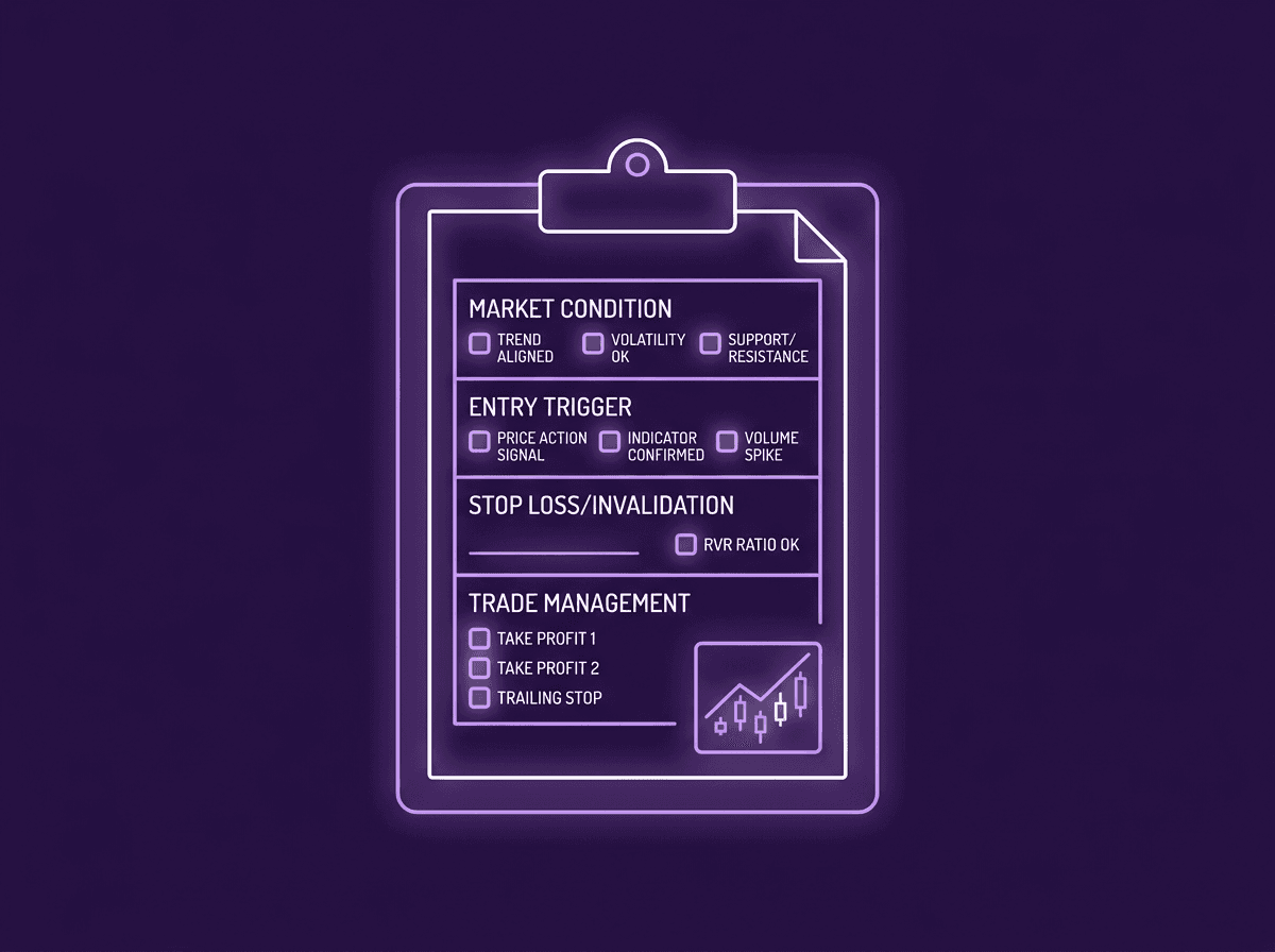 Think of it like a pilot's pre-flight checklist. A pilot doesn't glance at the wing and think "looks fine." Every item gets checked off. If one fails, the plane stays on the ground. Your trades should work the same way.