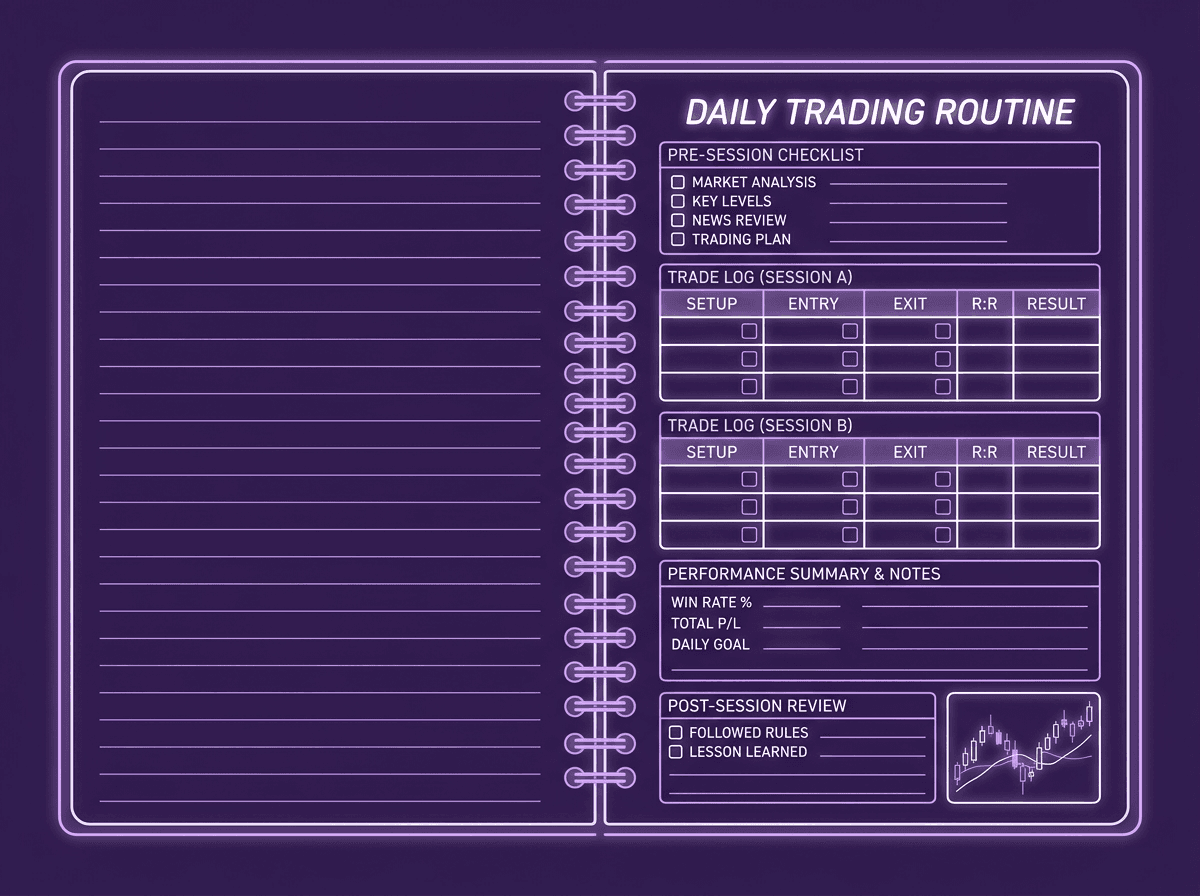Pair this with a broader pre-market routine that includes news checks, risk settings, and mindset preparation. The chart markup is the technical piece; the routine is the full preparation system.
