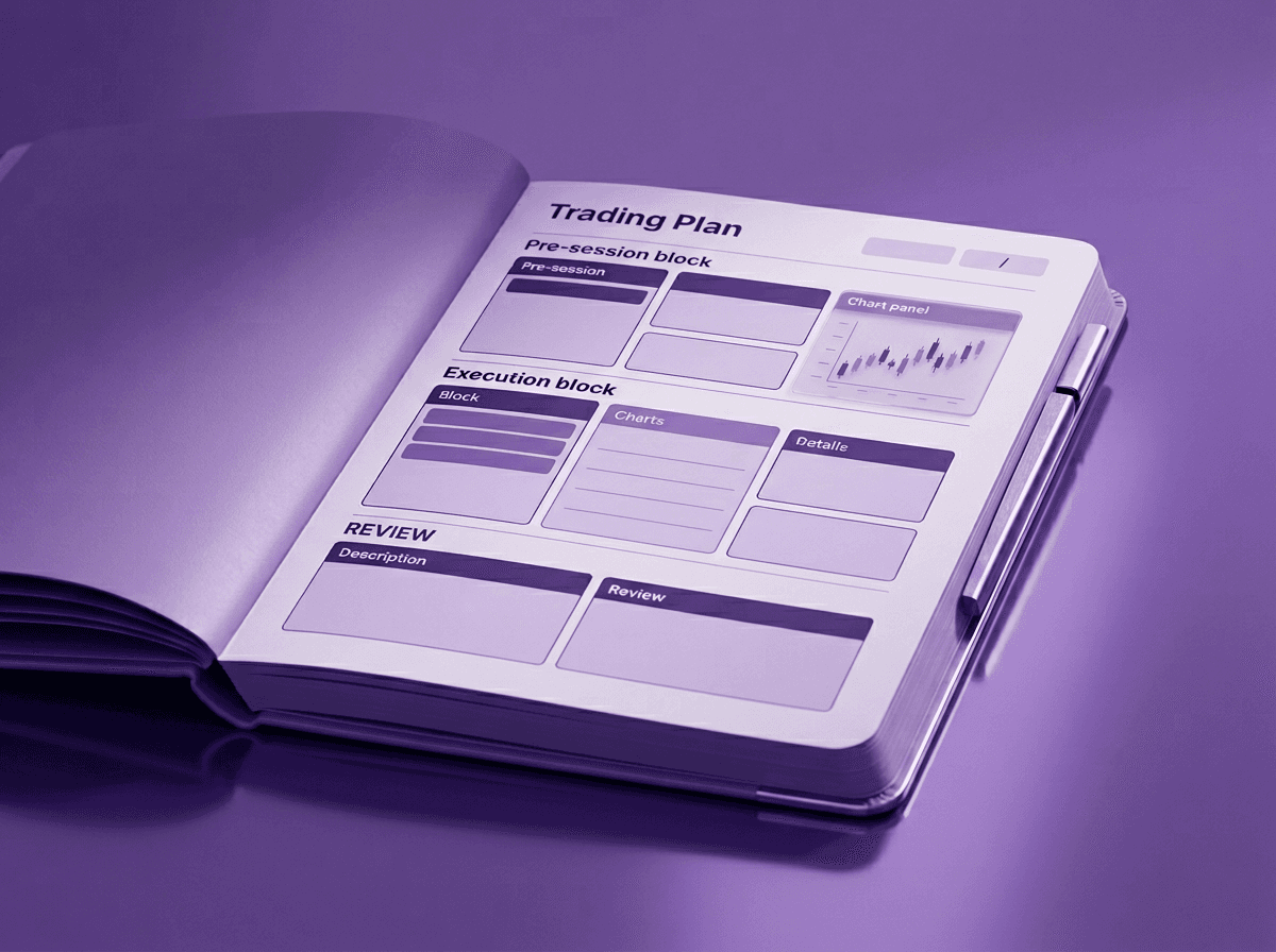 Build a complete trading day structure with pre-market prep, execution, and post-market review. One connected flow so nothing gets skipped.